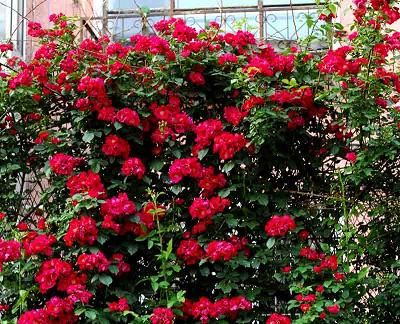 藤本月季花多色艷,全身開花、花頭眾多,甚為壯觀。園林中多將之攀附于各式通風良好的架、廊之上,可形成花球、花柱、花墻、花海、拱門形、走廊形等景觀。